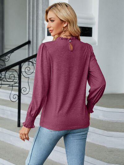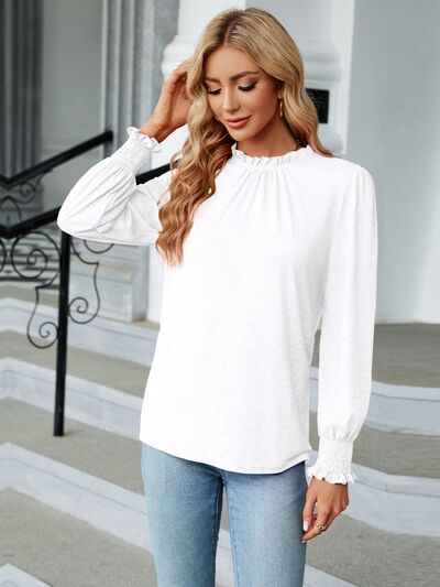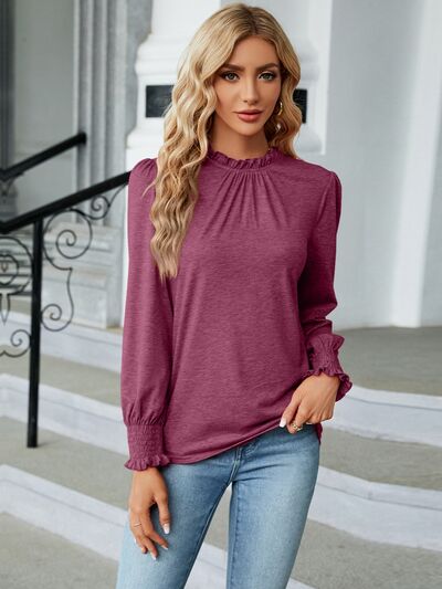 Frill Mock Neck Long Sleeve Blouse