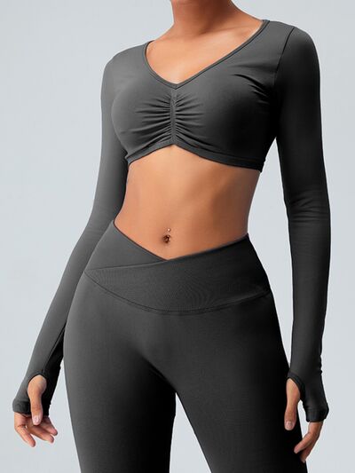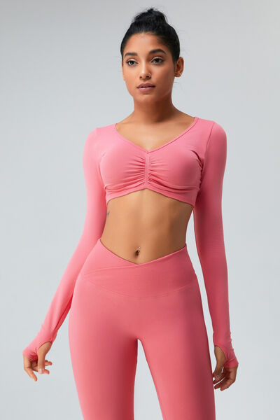 Ruched V-Neck Long Sleeve Active T-Shirt
