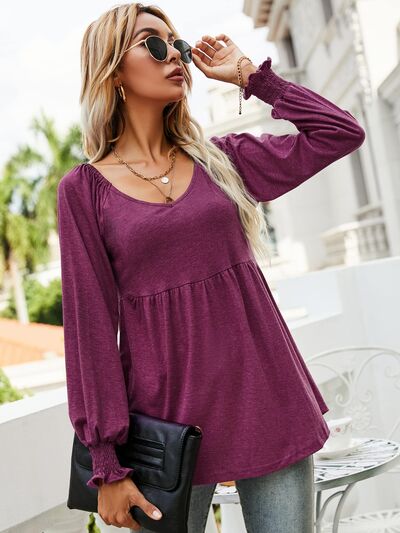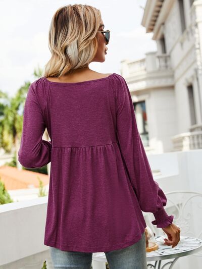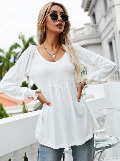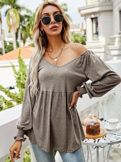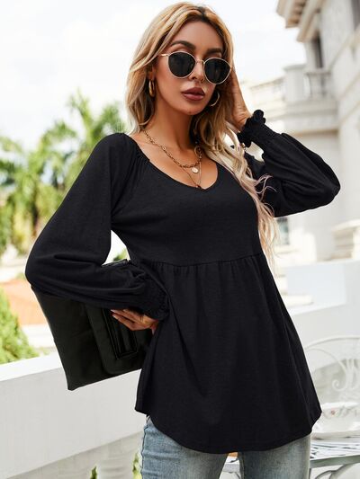 V-Neck Lantern Sleeve Blouse
